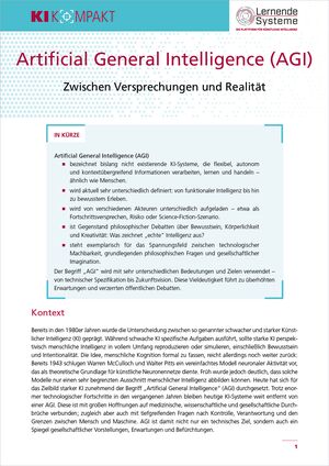 KI Kompakt bietet einen knappen, fundierten und wissenschaftlich basierten Überblick über aktuelle Entwicklungen im Bereich Künstliche Intelligenz und zeigt Potenziale, Risiken sowie offene Fragen auf. Die Analysen entstehen mit Unterstützung von Expertinnen und Experten der Plattform Lernende Systeme und werden von der Geschäftsstelle herausgegeben. Die vierte Ausgabe der Reihe mit dem Titel „Artificial General Intelligence (AGI) – Zwischen Versprechungen und Realität“ steht zum kostenfreien Download zur Verfügung.