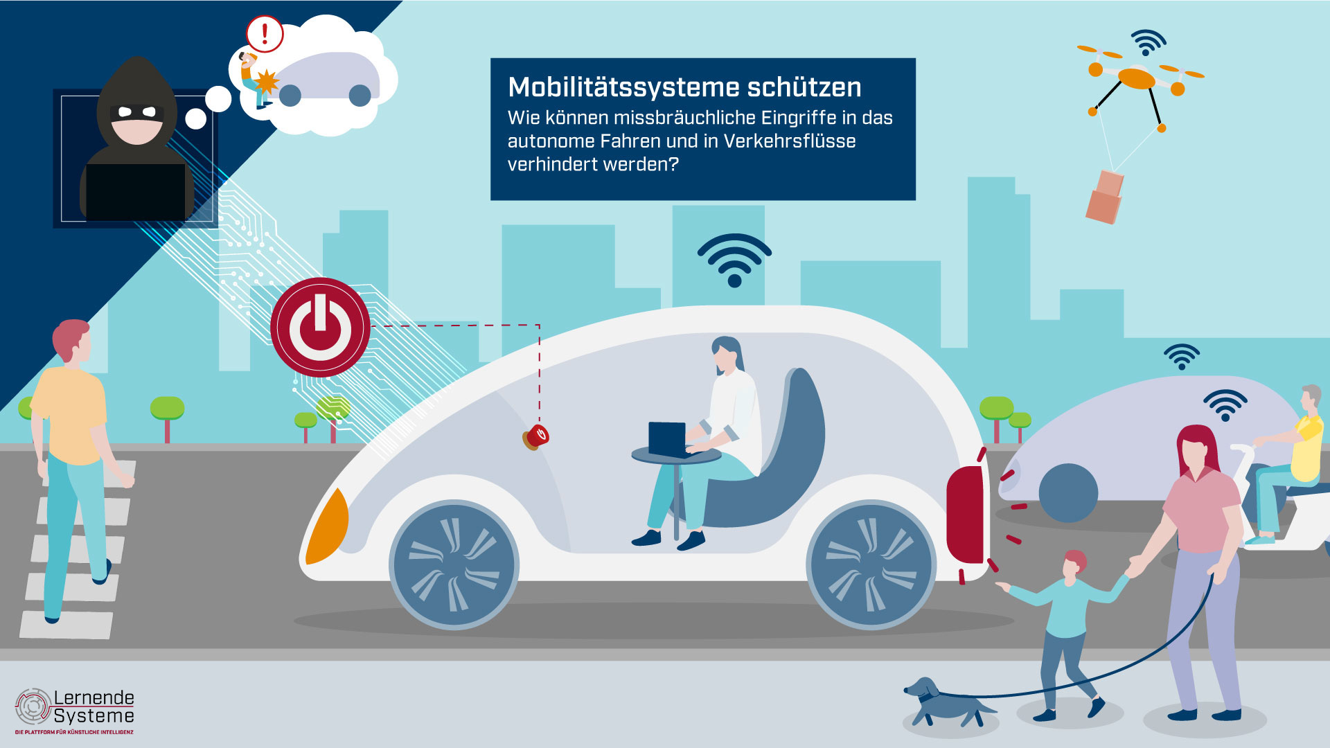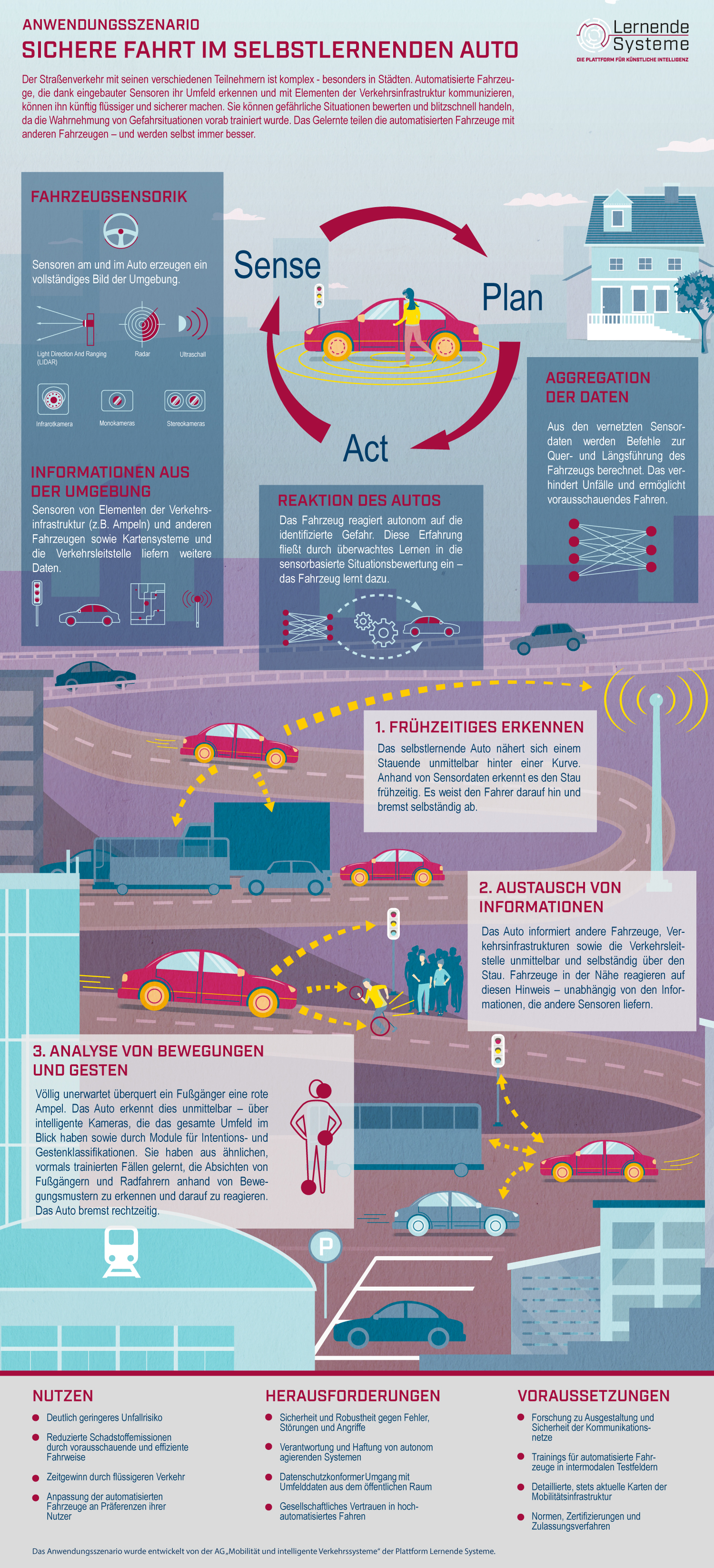 Infografik zum Anwendungsszenario der AG 5 – Mobilität, intelligente Verkehrssysteme.
