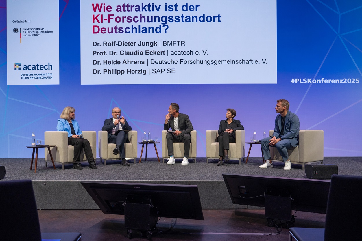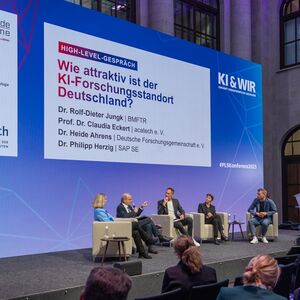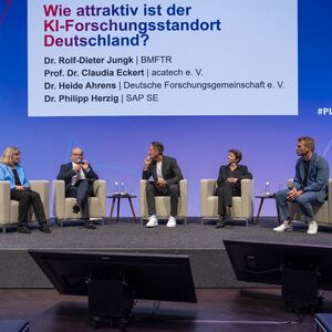 Es herrscht eine nie dagewesene Dynamik im Bereich der Künstlichen Intelligenz (KI). Technologische Innovationen eröffnen neue Möglichkeiten und milliardenschwere Investitionen befördern den internationalen Wettbewerb. Mit einem Blick auf die Rolle Deutschlands und Europas in diesem Rennen förderte die Konferenz mit Impulsvorträgen und Panel-Diskussionen unter Einbeziehung des Publikums den fachübergreifenden Austausch unter KI-Expertinnen und -Experten aus Wissenschaft, Wirtschaft, Politik und Gesellschaft. Im Mittelpunkt der Diskussionen stand dabei unter anderem die Attraktivität des KI-Forschungsstandortes Deutschland.