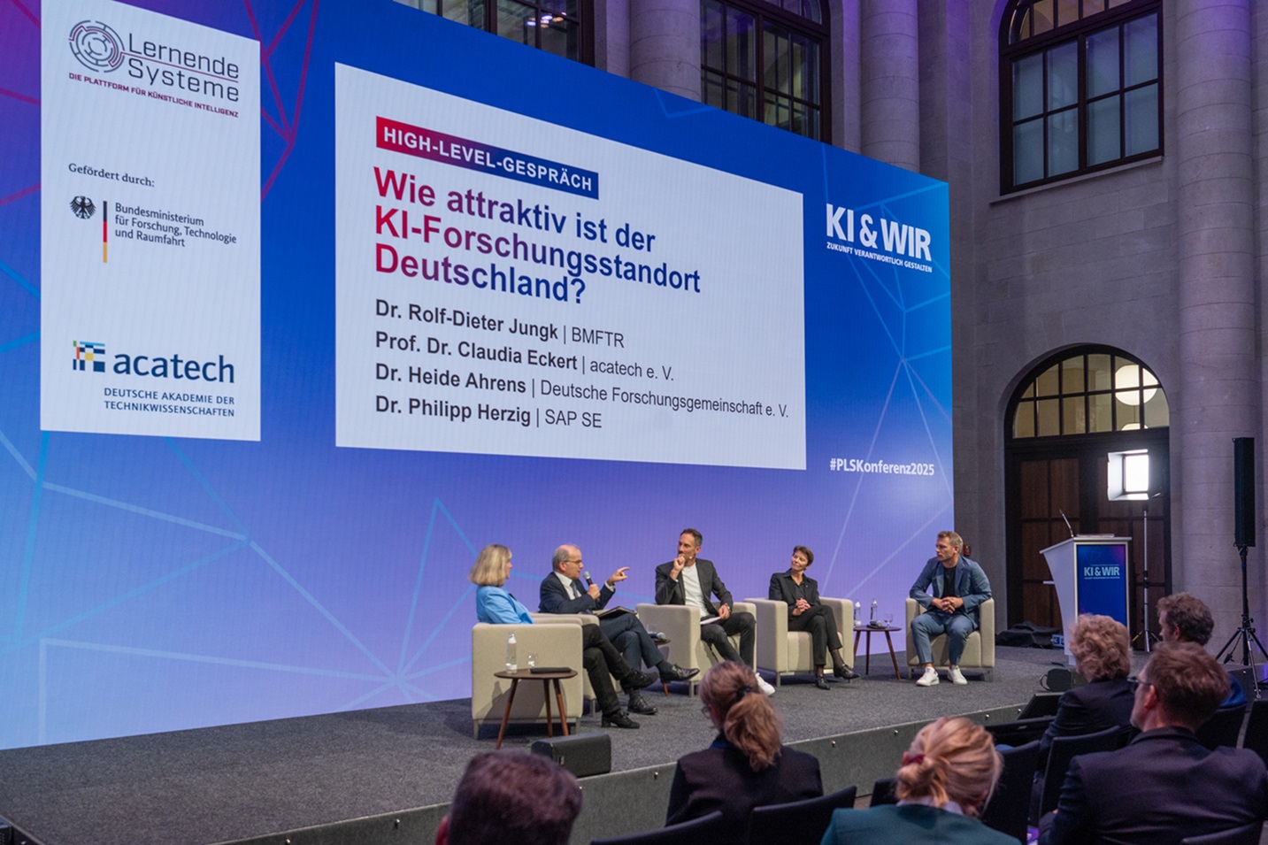 Deutschland ist als Pionier der KI-Forschung seit vielen Jahren gut aufgestellt und international vernetzt. Dabei nutzt nicht nur die Wissenschaft, sondern auch die deutsche Wirtschaft – von Start-ups über KMU bis hin zu Großunternehmen – zunehmend die Potenziale von KI. Zugleich stellen sich zentrale Fragen: Wohin entwickelt sich die Technologie, welche Anwendungsfelder entstehen? Wie können Deutschland und Europa dauerhaft im globalen Wettbewerb bestehen – und zugleich werteorientiert handeln? Wie bleiben wir technologisch souverän und wie verändert KI die Gesellschaft? Zu diesen Fragen diskutierte die Plattform Lernende Systeme mit rund 200 Gästen auf ihrer Konferenz „KI & WIR. Zukunft verantwortlich gestalten“ am 30. September in Berlin.