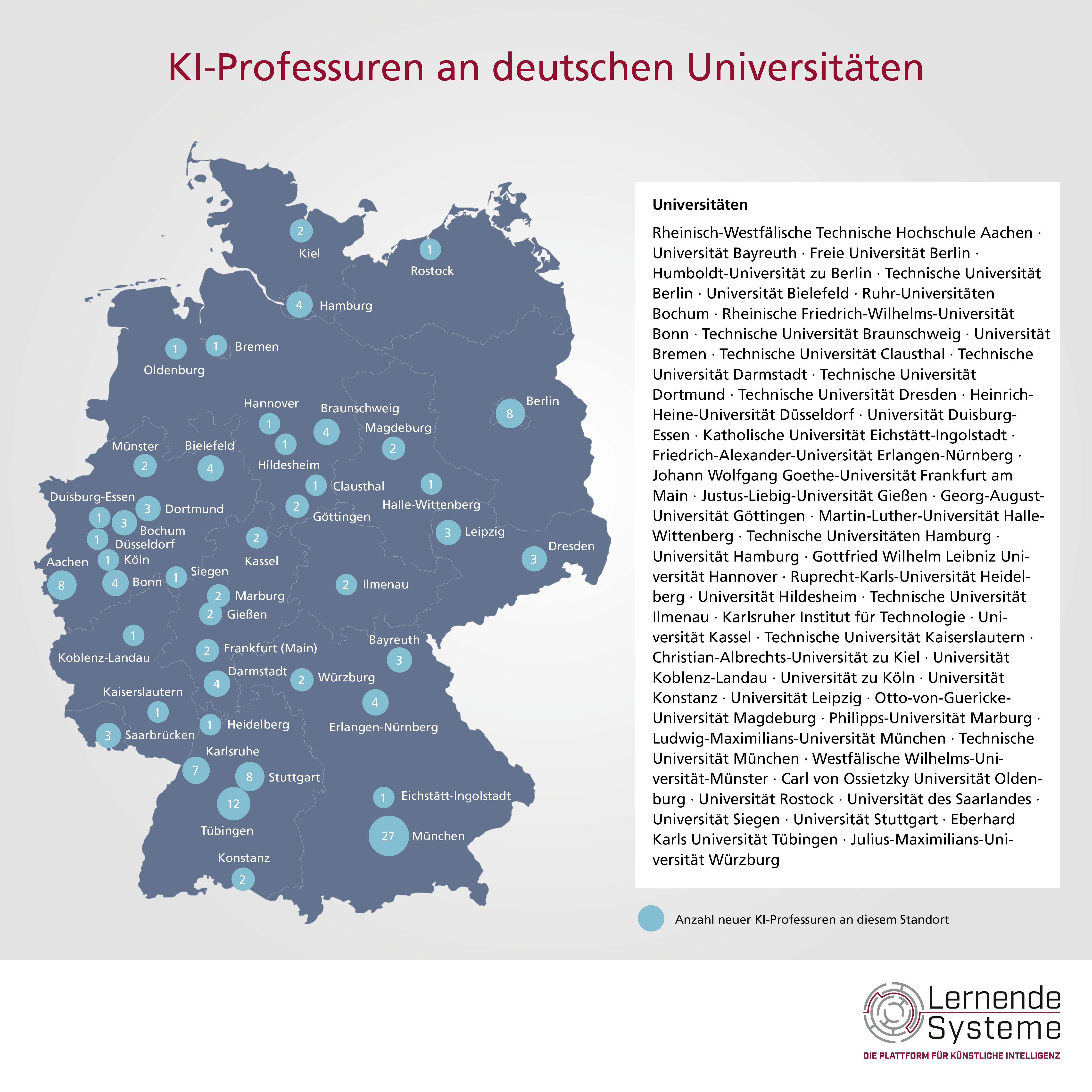 Hier finden Sie Grafiken aus dem KI-Monitoring als Download. Alle Dateien sind für eine redaktionelle Verwendung freigegeben (bei Nennung der Quelle © Plattform Lernende Systeme).