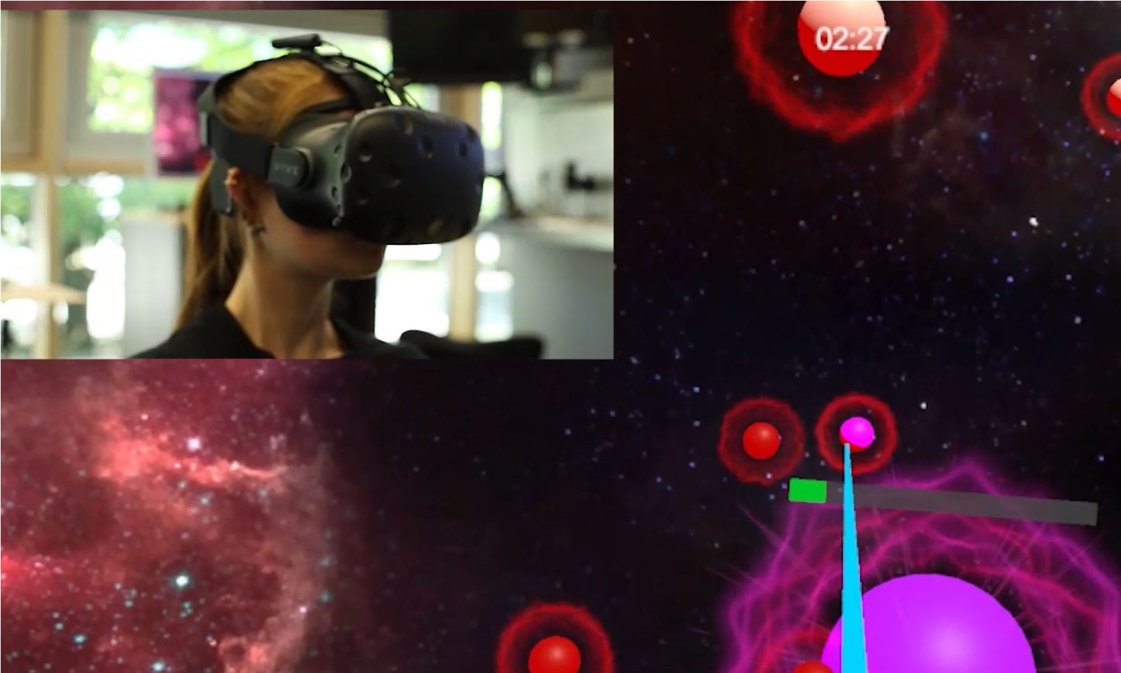 Das Exponat MindTrain zeigt eine neuartige, gamifizierte Neurofeedback-Trainingsumgebung. MindTrain ermöglicht den Nutzerinnen und Nutzern, die Fähigkeit zu erlernen, ihre eigene Gehirnaktivität mithilfe von auf Virtual Reality (VR) basiertem Feedback zu kontrollieren. MindTrain kombiniert das Konzept der impliziten Kontrolle der Hirnaktivität mit einem mobilen EEG-Wearable in einer interaktiven und immersiven VR-Umgebung. MindTrain erlaubt so das Training von Entspannungs- und Konzentrationszuständen für die Nutzenden.